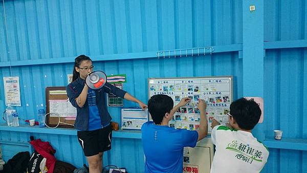 *照片說明:唱名的人搭配手勢指示讓旁人移動磁鐵的時候能更有效率*