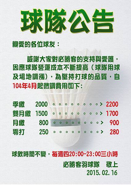 大年初四(2016/02/11 星期四)球聚是暫停一回的喔!